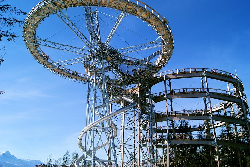 SkyWalk Poronin to nowoczesna wieża i kładka widokowa nad koronami drzew. Już od pierwszych kroków poczujesz lekki dreszcz emocji i rosnącą ciekawość. Solidna konstrukcja, jak również zabezpieczenia pozwalają w pełni skupić się na widokach. Ścieżka stopniowo wznosi się ponad las, dlatego widzisz coraz więcej górskich szczytów. Na kolejnych zakrętach czekają punkty widokowe, ławki oraz miejsca na pamiątkowe zdjęcia. Poruszasz się cały czas bezpiecznie, a jednocześnie czujesz bliskość natury i przestrzeni.